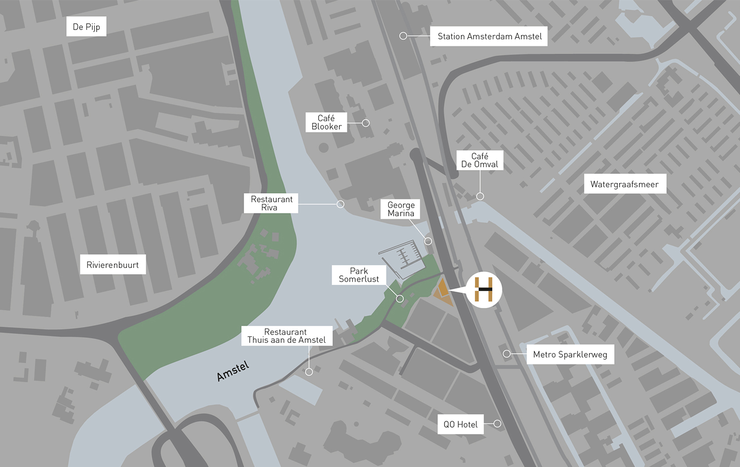 Pal voor de deur van HAUT ligt de jachthaven, een nieuwe hotspot aan de Amstel. Naar de Amsterdamse grachten is het slechts vijf minuten varen. HAUT biedt het beste van twee werelden: wonen aan de Amstel & Park Somerlust én vlakbij de binnenstad. Winkelen kan in de echt Amsterdamse Rijnstraat. Ook in de buurt van HAUT: uitstekende restaurants en cafés als Riva, Rijssel en Thuis aan de Amstel. Hartje Amsterdam ligt op fietsafstand.